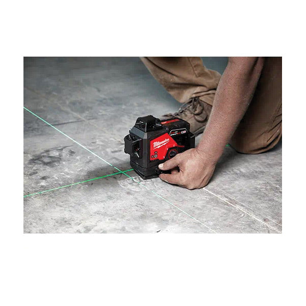 Our M12™ Green 360 deg 3-plane laser kit provides you with all day runtime and best visibility in its class. You'll get 15+ hr of continuous runtime when paired with an M12™ REDLITHIUM™ 4.0 XC battery for ultimate productivity. The high-intensity green laser offers you superior visibility up to 250 ft (Dia) for long range applications. The three 360 deg planes include horizontal and two vertical lines for fast and easy alignment, leveling, squaring and transfers allowing you to easily layout large spaces with one tool. The integrated bracket features a micro control and pivots on plumb point for easy and fast alignment. The amplified rare earth magnets provide a strong hold and will not slide on steel studs, while an integrated hang hole makes setup easy and efficient in any environment. As a part of the industry leading Milwaukee® M12™ system, this 360 deg laser level is compatible with all M12™ batteries.