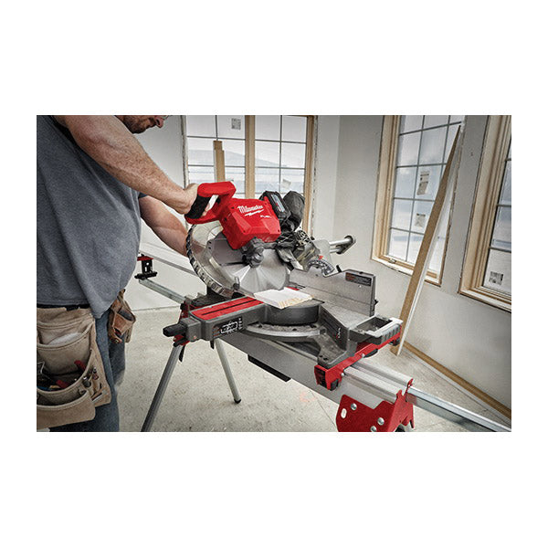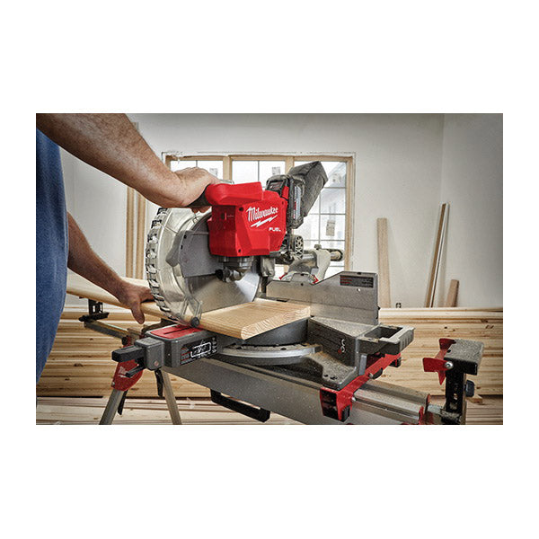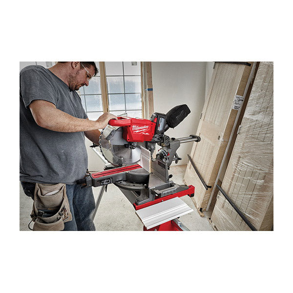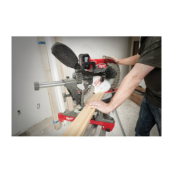 Our M18 FUEL™ 12 in dual bevel sliding compound miter saw with ONE-KEY™ generates the power of 15 A corded saws and is designed for the professional carpenter, remodeler and general contractor. The miter saw is up to 15% lighter than competitor saws and delivers up to 330 cuts per charge. It has the same capacity as corded a 12 in miter saw, providing you with the ability to perform all of your critical applications while increasing your portability, efficiency and productivity on the jobsite. The cordless miter saw features our POWERSTATE™ brushless motor, REDLINK PLUS™ tool intelligence and is powered by our M18™ REDLITHIUM™ batteries. The saw has a shadow cut line LED light, an adjustable stainless steel detent plate, cam locking miter system and easy carry side handles, making it a leading miter saw solution. Sold as Tool Only - Battery not included.
