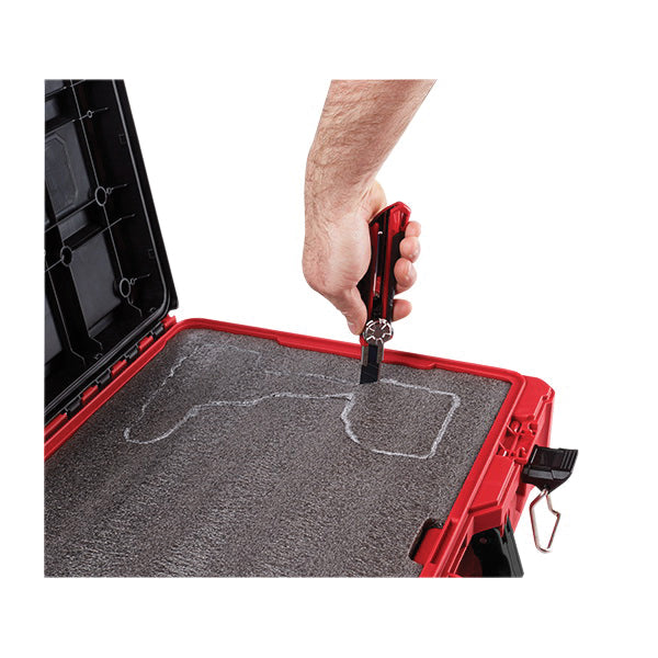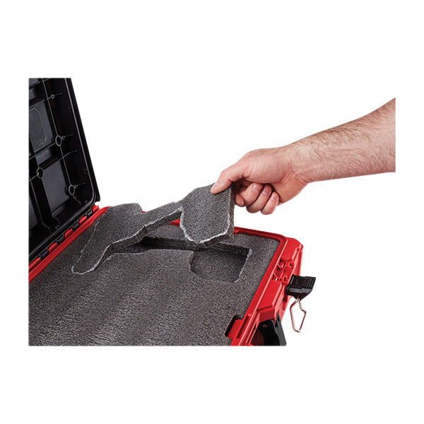 Our PACKOUT™ modular storage system is the industry's most durable and versatile storage system. The PACKOUT™ tool case with customizable foam insert has an impact-resistant molded base that users can connect with all other PACKOUT™ system components via integrated locking cleats. This durable tool storage box is constructed with impact-resistant polymer and a metal reinforced locking point so it can withstand harsh jobsite environments. Our heavy-duty tool case is IP65-rated weather seal protects tools and accessories from rain and other jobsite debris. The tool case has a 75 lb weight capacity and includes a customizable foam insert, which allows you to trace and cut out custom pockets to securely store and protect your tools. Our PACKOUT™ modular storage system allows you to customize and build your own storage system to easily transport and organize your tools and accessories.