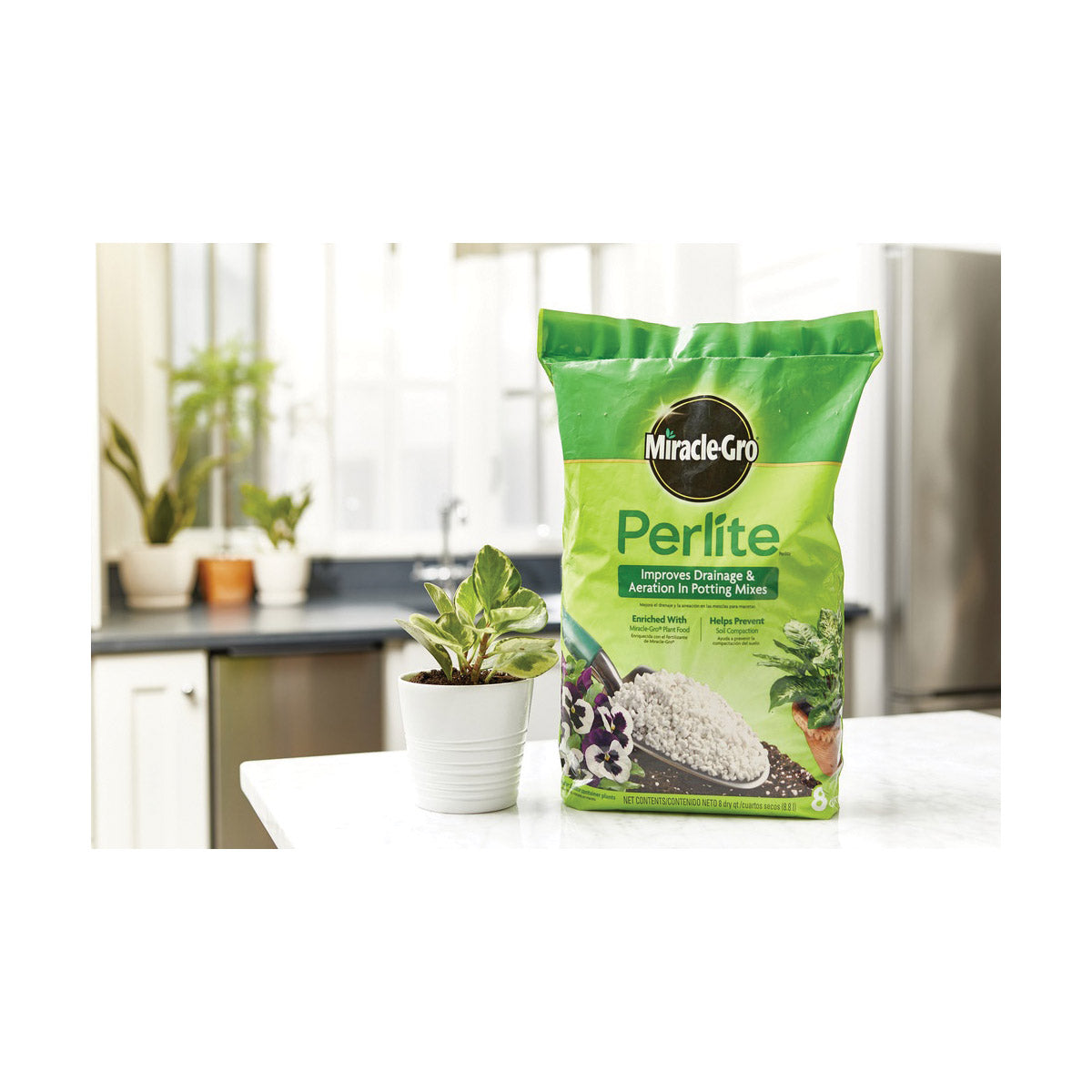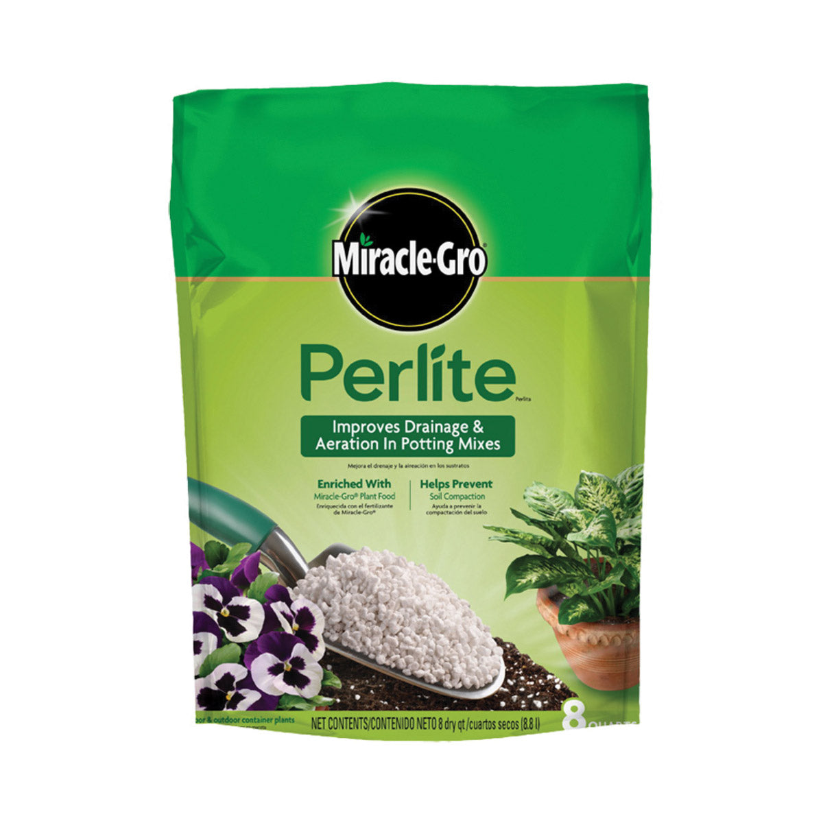 Miracle-Gro Perlite, Net Content: 8 qt, Bag, Granular, Odor/Scent: Mild, Off-White/White