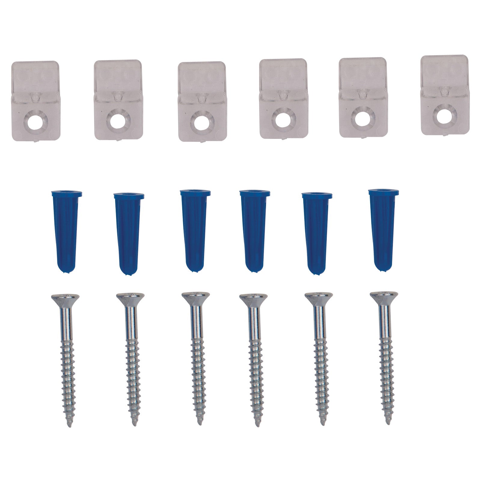 The ProSource mirror holder is clear and made of plastic. The anchor and screws are included.