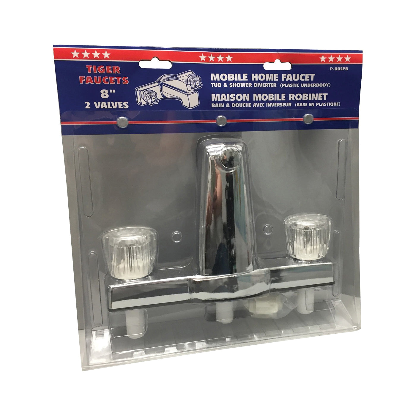 Plastic with plastic underbody, 8 in center to center. Clear handles. Bagged.