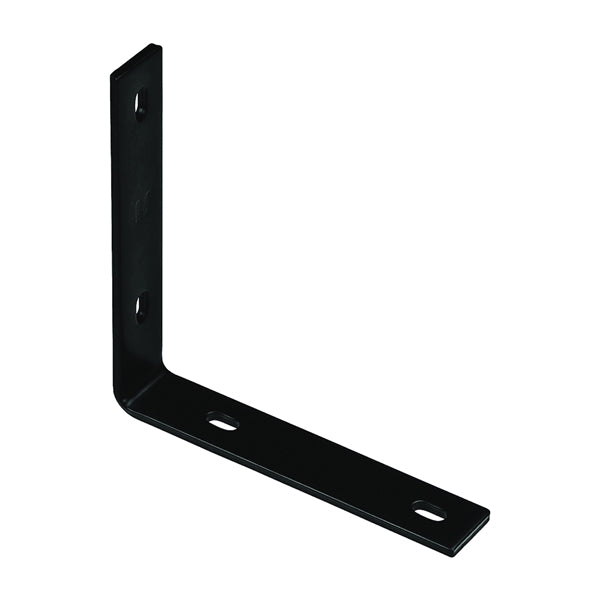 Used to reinforce 90 deg angles by applying to the side of the angle. Slots for 5/16 in Carriage Bolt. Black powder coat finish for improved weather resistance.