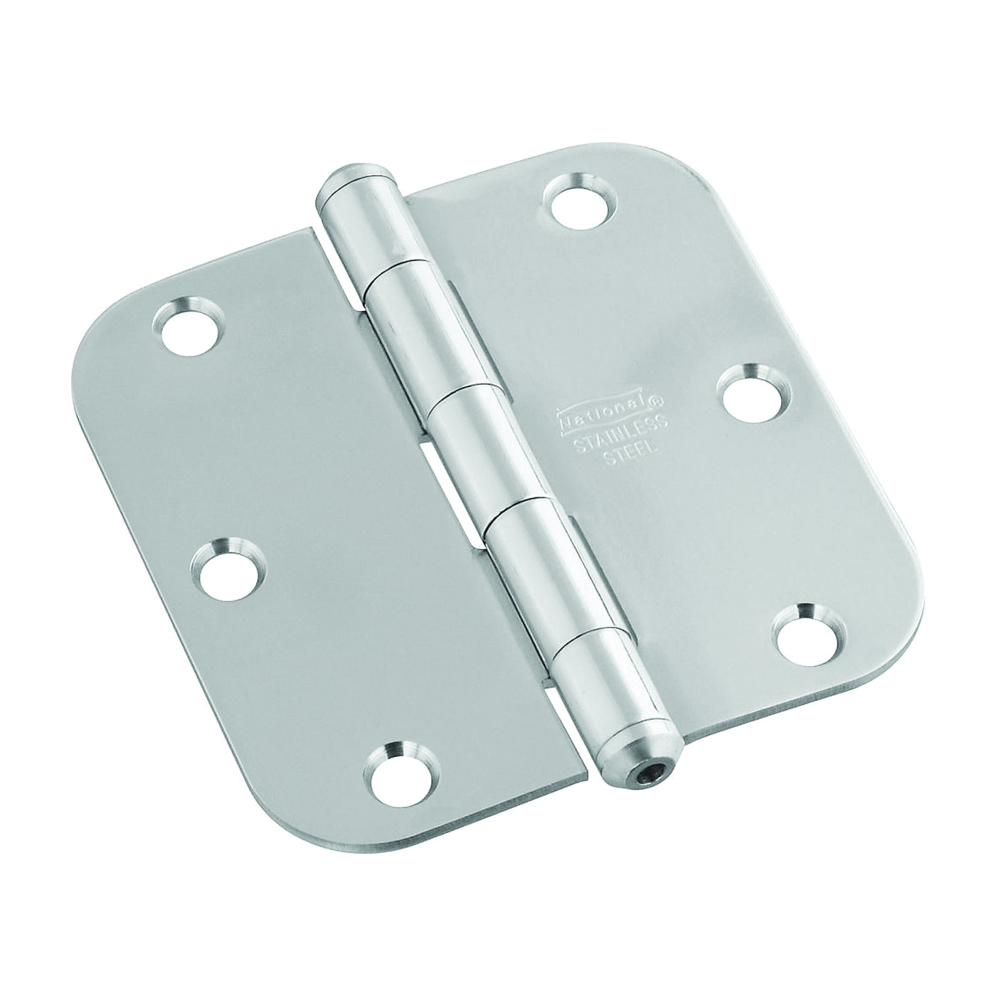Stainless steel for maximum corrosion resistance. Nib on hinge for finished appearance. Five knuckle, full mortise design. Screw holes are countersunk. Removable pin for easier installation.