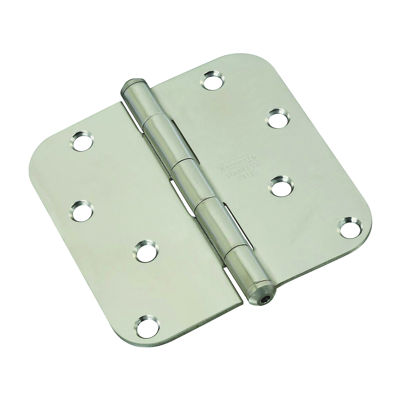 Stainless steel for maximum corrosion resistance. Nib on hinge for finished appearance. Five knuckle, full mortise design. Screw holes are countersunk. Removable pin for easier installation.