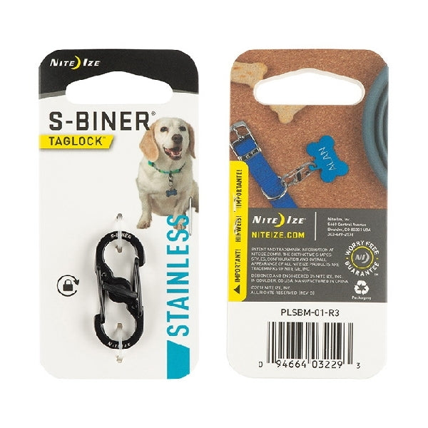 ID tags are only valuable when they stay attached to your pet, which is why the standard tag hangers that often come with them (either too flimsy to be reliable or too difficult to thread) leave so much to be desired. That's where our S-Biner tag lock comes in. Constructed of stainless steel, with two high quality stainless steel gates and a center lock made of tough, durable plastic. With the S-Biner tag lock, you simply clip the ID tag (or tags) to one gate and the D-ring of your pet's collar or harness to the other. Then, with a simple twist of the center lock, the gates securely lock and stay that way until you twist it open again. Sturdy, water-resistant and ultra-secure, not only does our S-Biner tag lock provide ease of use, but peace of mind. It's simply the best way to keep your pet's ID tags where you want them (on your pet) and also makes adding or changing tags a breeze.