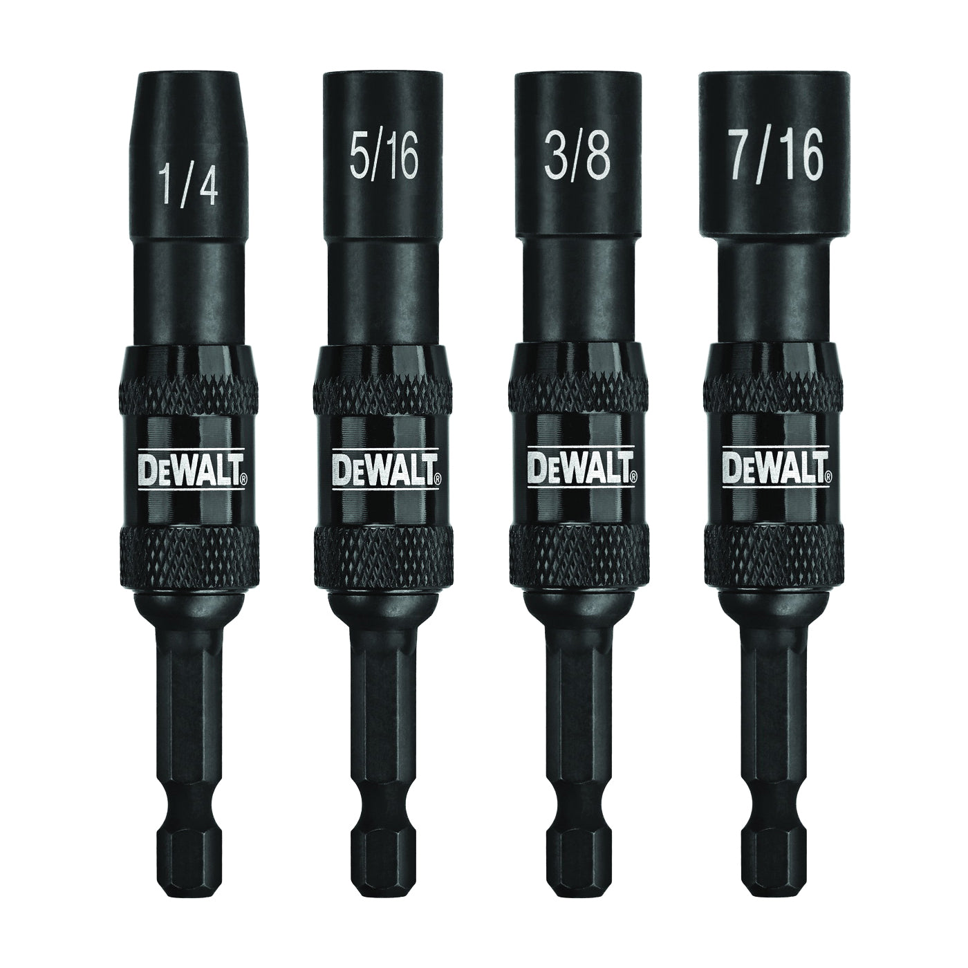 • DeWALT DWPVTDRV Nut Driver Set, 4-Piece, Pivoting, Steel, Magnesium Phosphate