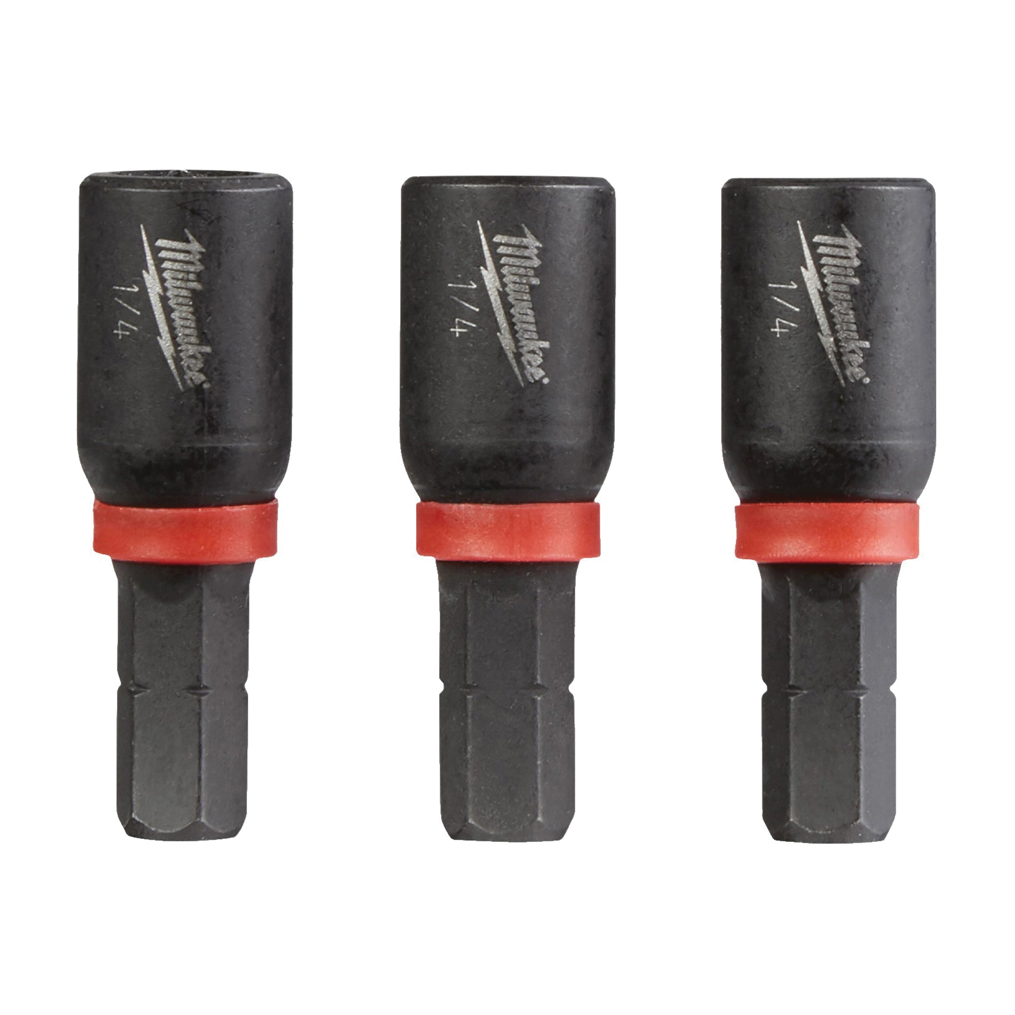 Milwaukee SHOCKWAVE™ Impact Duty™ insert magnetic nut drivers are engineered for extreme durability and up to 10X life. Made from proprietary steel and heat-treated to control hardness, the SHOCKWAVE™ Impact Duty™ magnetic nut drivers feature a powerful magnet allowing for a secure grip and unyielding bit engagement. The bits feature color-coded rings for quick and easy size identification and a chamfered edge to allow for fastening in tight spaces. Designed for use with Milwaukee SHOCKWAVE™ magnetic bit tip holders 2.36 in, 3 in, 6 in, 12 in, 30 deg Knuckle™ pivoting bit holder and all bit tip holders.