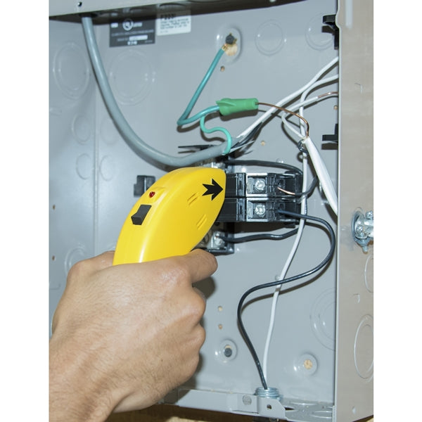 Sperry makes the job of locating electrical circuits (AC circuits of 110 to 125 V) quick and easy. Turning off the correct breaker is critical when considering work on an electrical circuit and can take an excessive amount of time using trial and error until you hit the right one. This circuit breaker finder features a sending unit which you plug into a receptacle in the room where you want to work and a receiving unit which you use to test the breakers to correctly identify the right breaker every time. The receiver features both a visual flashing light and an audible beeping to alert you when the correct breaker is identified. The package includes a user manual and a 9 V battery required for the receiver unit.