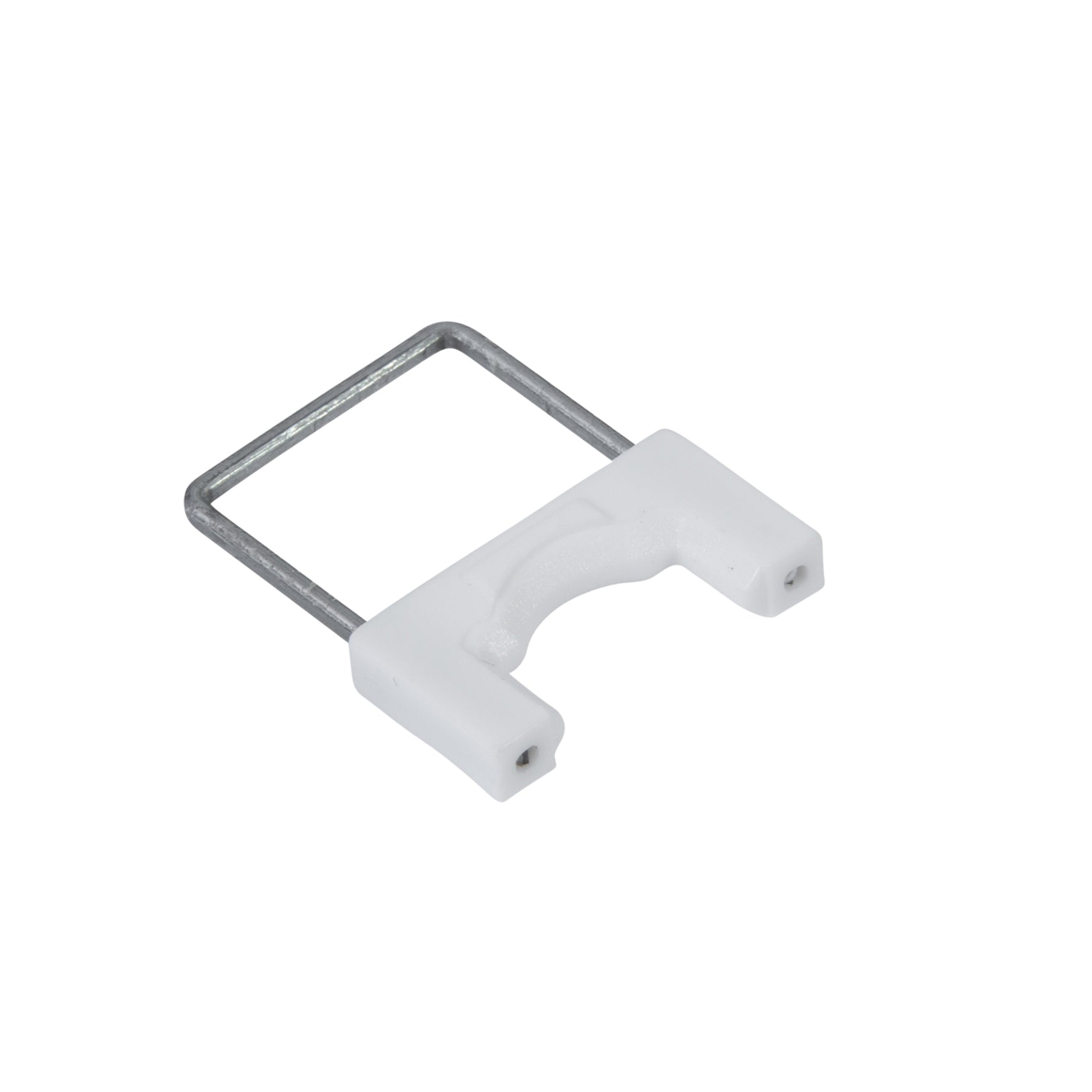 Smooth color saddle prevents damage to insulation. Secures round and flat cable. Legs have 2 barbs for holding strength in wood. For use in CableBoss staple gun.