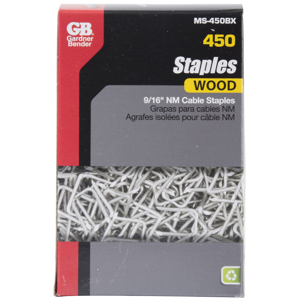 These 1-1/4 in x 9/16 in graphite metallic steel staples are designed to secure 14/3, 12/3 and 10/3 NM cables. These strong steel staples feature burr-free, sharper tips so the legs drive in straight without splitting wood and are engineered with recessed heads to protect cable jackets. Virtually oil-free for cleaner handling and manufactured to contractor preferred length. Designed to be driven into wood with a hammer. Made in the USA.