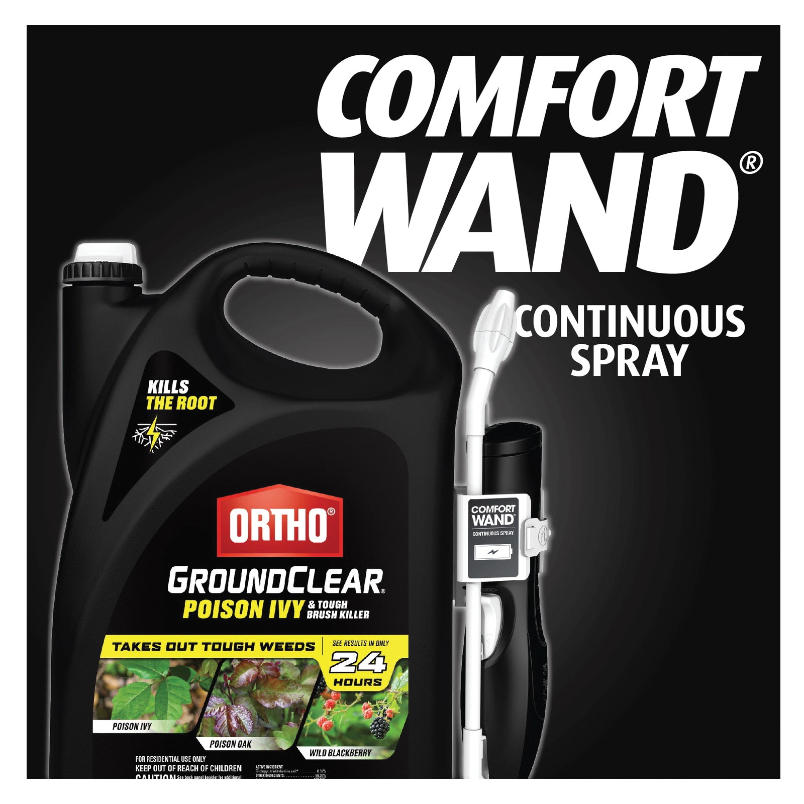 Use Ortho GroundClear® poison ivy and tough brush killer to kill over 60 types of weeds and brush, including poison ivy, poison oak and wild blackberry. Also kills honeysuckle, kudzu, ragweeds, dandelion and other weeds as listed. The attached comfort wand makes spot treatment around homes, cabins, buildings, fences and along trails. You'll start to see results in only 24 hr. The formula is rainproof in 2 hr and kills to the root. Trust Ortho GroundClear® poison ivy and tough brush killer to take out tough weeds.