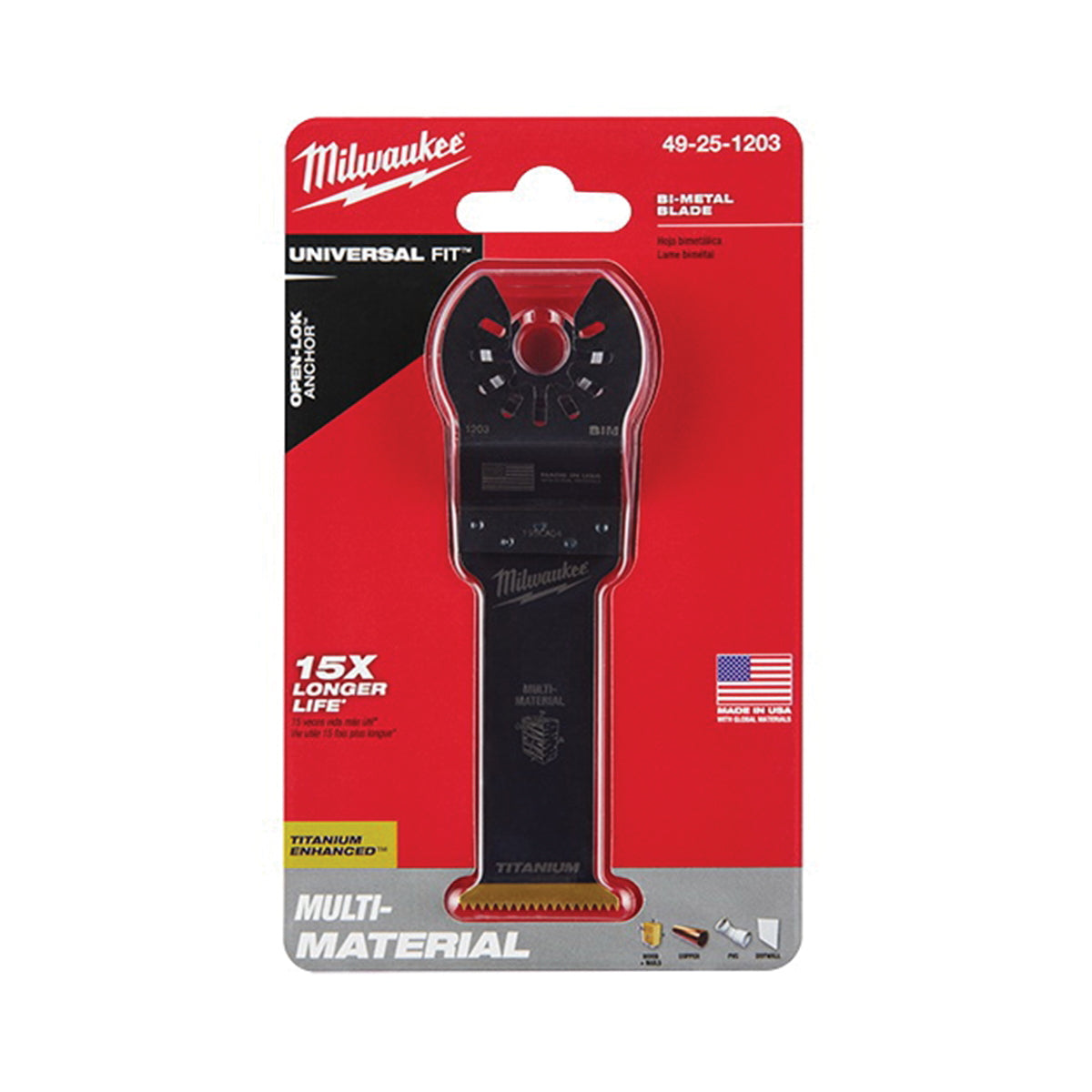 Our universal fit OPEN-LOK™ oscillating multi-tool HCS wood blades are made from premium HCS with edge ground teeth. These features provide you with optimal cutting performance in wood, PVC, drywall and other soft materials. This Milwaukee® blade delivers faster cuts than the previous generation of HCS blades with more teeth and an increased 1-3/8 in cutting width with a deeper plunge cut. These Milwaukee® multi-tool blades are designed and made in the USA with global materials.