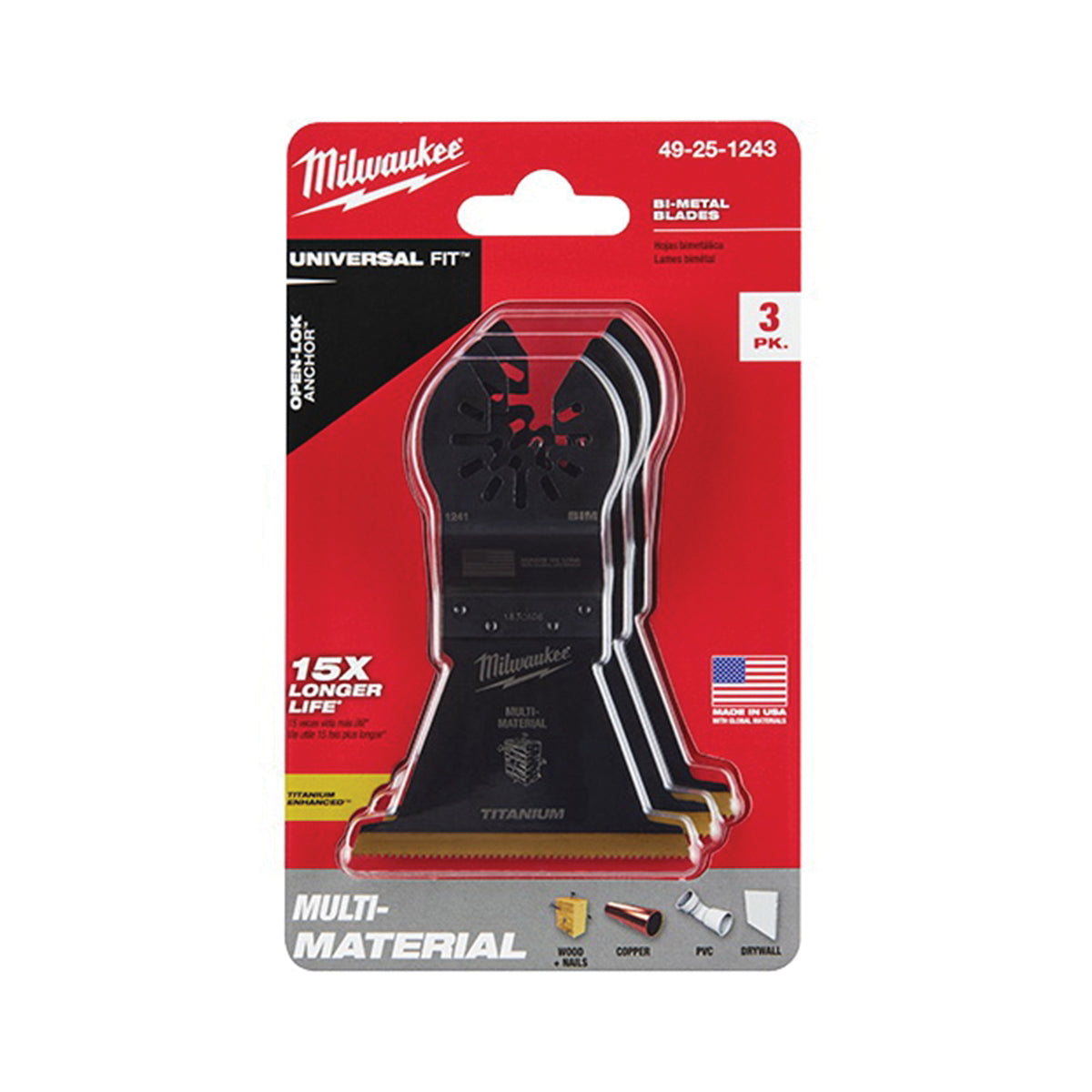 Our universal fit OPEN-LOK™ oscillating multi-tool HCS wood blades are made from premium HCS with edge ground teeth. These features provide you with optimal cutting performance in wood, PVC, drywall and other soft materials. This Milwaukee® blade delivers faster cuts than the previous generation of HCS blades with more teeth and an increased 1-3/8 in cutting width with a deeper plunge cut. These Milwaukee® multi-tool blades are designed and made in the USA with global materials.