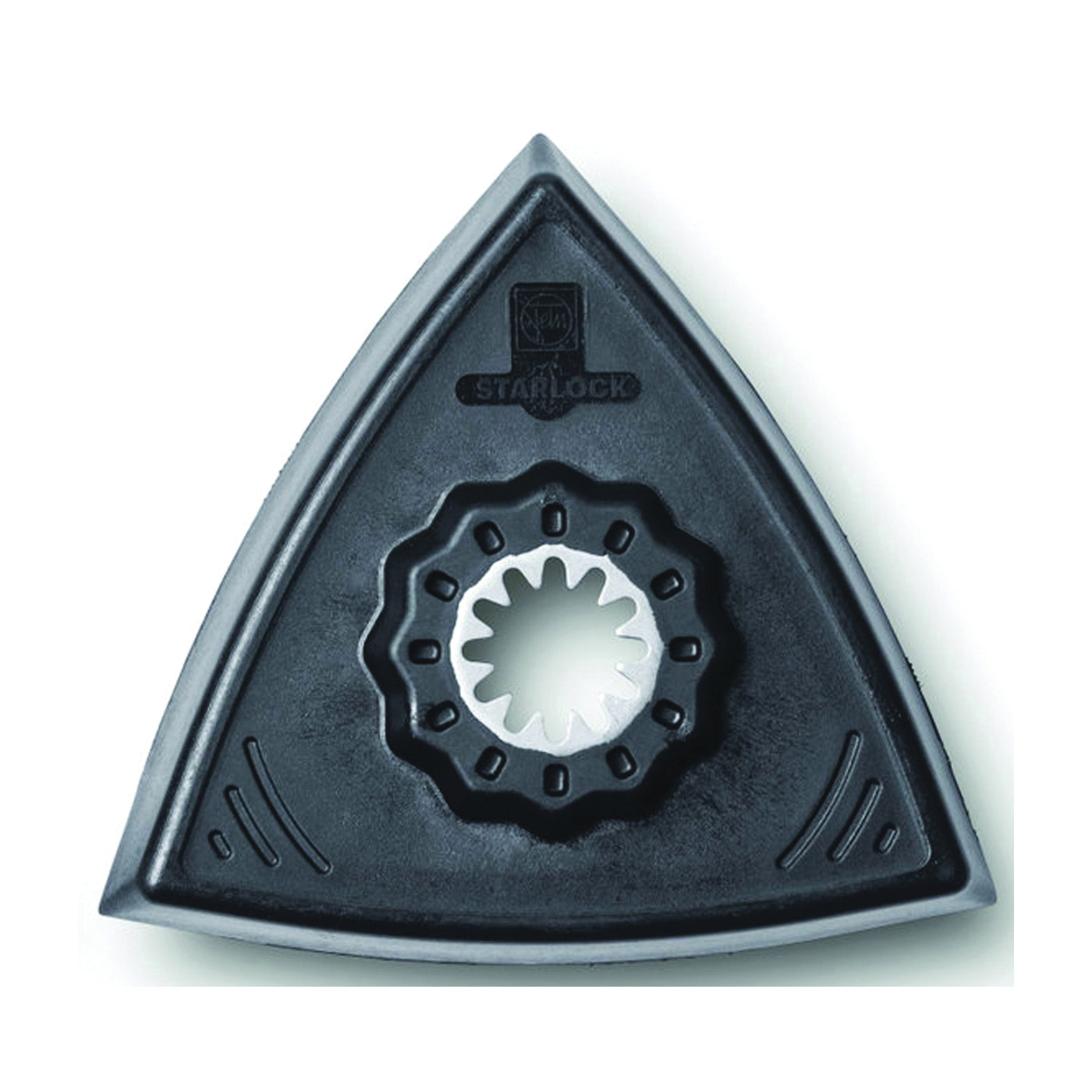 Standard version. Plastic carrier plate to prevent damage and marks on the workpiece. Triangular shape, hook-and-loop surface.
