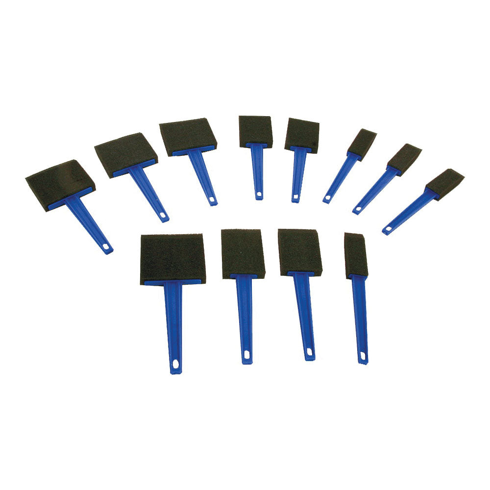 For adhesives, paint removers or solvents. Low density foam. Plastic handle. Includes 4 pieces each of 1 in, 2 in, 3 in brushes.