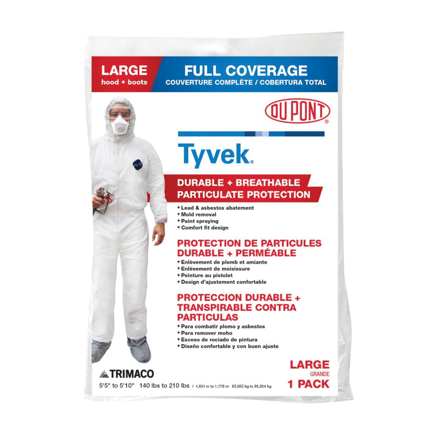 Trimaco's Coveralls with Hood and Boot made with Dupont's exclusive Tyvek material are heavy-duty and virtually impenetrable coveralls that provide the best balance of protection, durability and comfort. Tyvek is the industry standard for dry particulate barriers and protects from both irritating and hazardous materials including asbestos fiber and lead dust. Both heavy duty and tear resistant, Tyvek is perfect for lead and asbestos abatement/remediation.