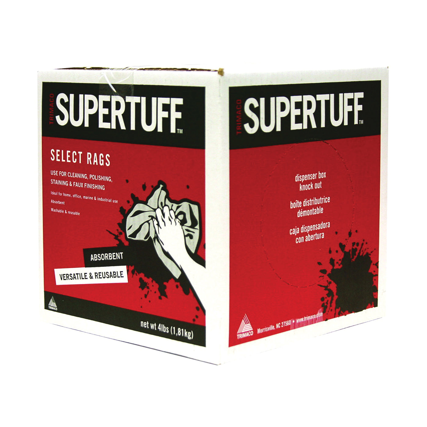 Trimaco SuperTuff pre-cut rag colored t-shirt knit rags. Absorbent and colorfast. Use throughout the home, office, marine and industry. Reusable and machine washable. Use for staining, polishing, cleaning and faux finishing.
