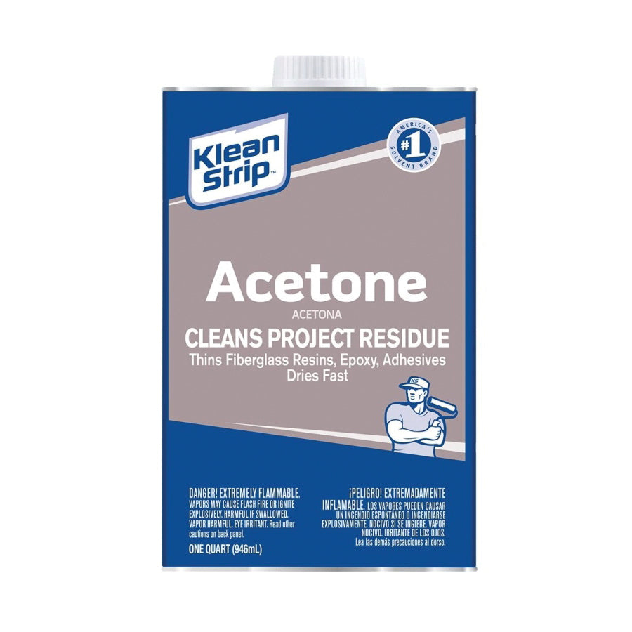 Klean Strip Acetone is the product to reach for when your projects require very fast drying times and you desire great results. Strong and fast-acting, Klean Strip® acetone is a highly effective thinner and remover for polyester and epoxy resins, ink, adhesives, contact cement and other specified coatings. It thins and cleans fiberglass resins, so it's an effective cleanup solvent for fiberglass projects. Klean Strip acetone will also remove excess fiberglass resins and foreign material from solvent-tolerant surfaces. Highly versatile, Klean Strip acetone evaporates quickly, leaves no residue and cleans up dried latex paint, uncured lacquers and label adhesives.