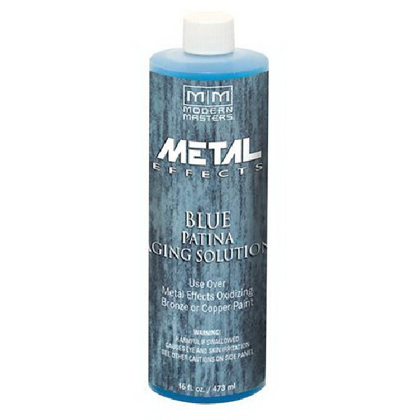 Blue patina aging solution is an acidic solution in water and when applied over oxidizing bronze paint will react with the real metal particles in the paint, thus speeding up the oxidization process creating a beautiful, authentic blue patina finish.