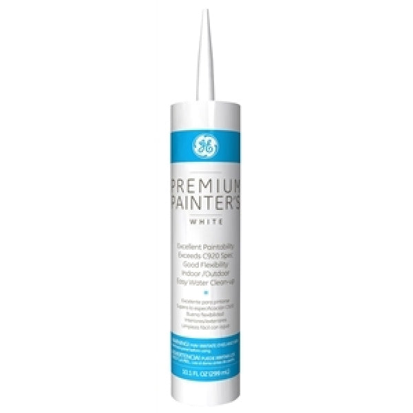 GE Painter's Sealant, 10.1 oz Net Content, Cartridge Container, White, 40 to 100 deg F Application, 24 hr Curing, 50 linear ft Coverage Area, Indoor, Outdoor Indoor/Outdoor, Dry to Touch: 2 hr, Resists: Moisture, Paintable: Yes, Caulking Gun Application Method