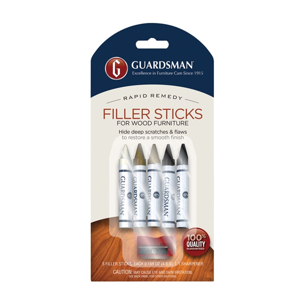 Formulated to meet the needs of furniture repair professionals, manufacturers and retailers, Guardsman wood filler sticks help you fill deep scratches and gouges in finished wood or simulated wood furniture, antiques, woodwork, picture frames, cabinets, counters, doors, floors, paneling and molding.