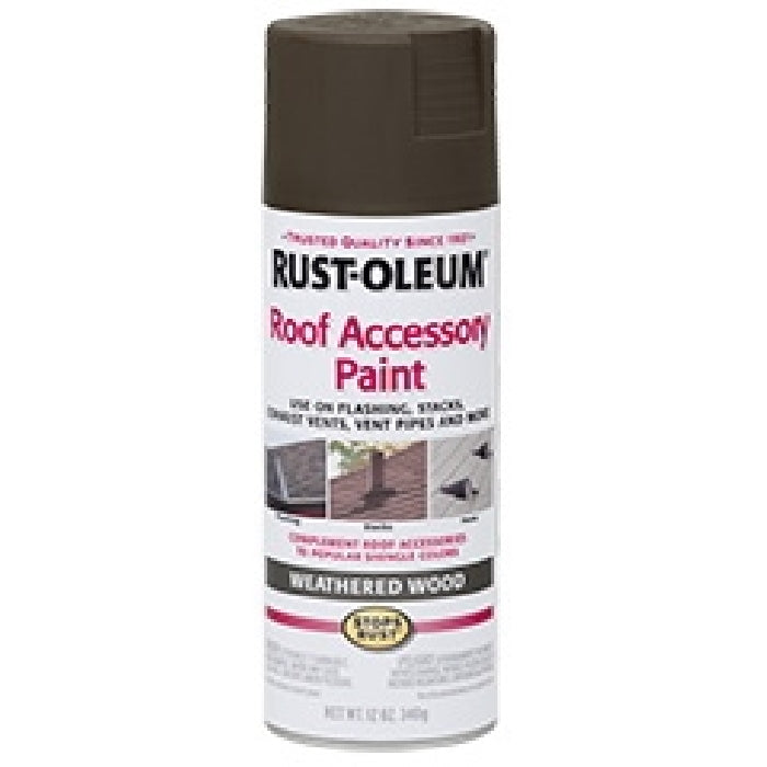 Roof accessory spray paint provides a finish to complimenting the most popular shingle colors. This line of aerosols helps to transform roof accessories and penetrations, while creating a durable, weather-resistant finish. This formula can be applied to wood, metal, masonry and plastic to compliment a variety of roof accessories.