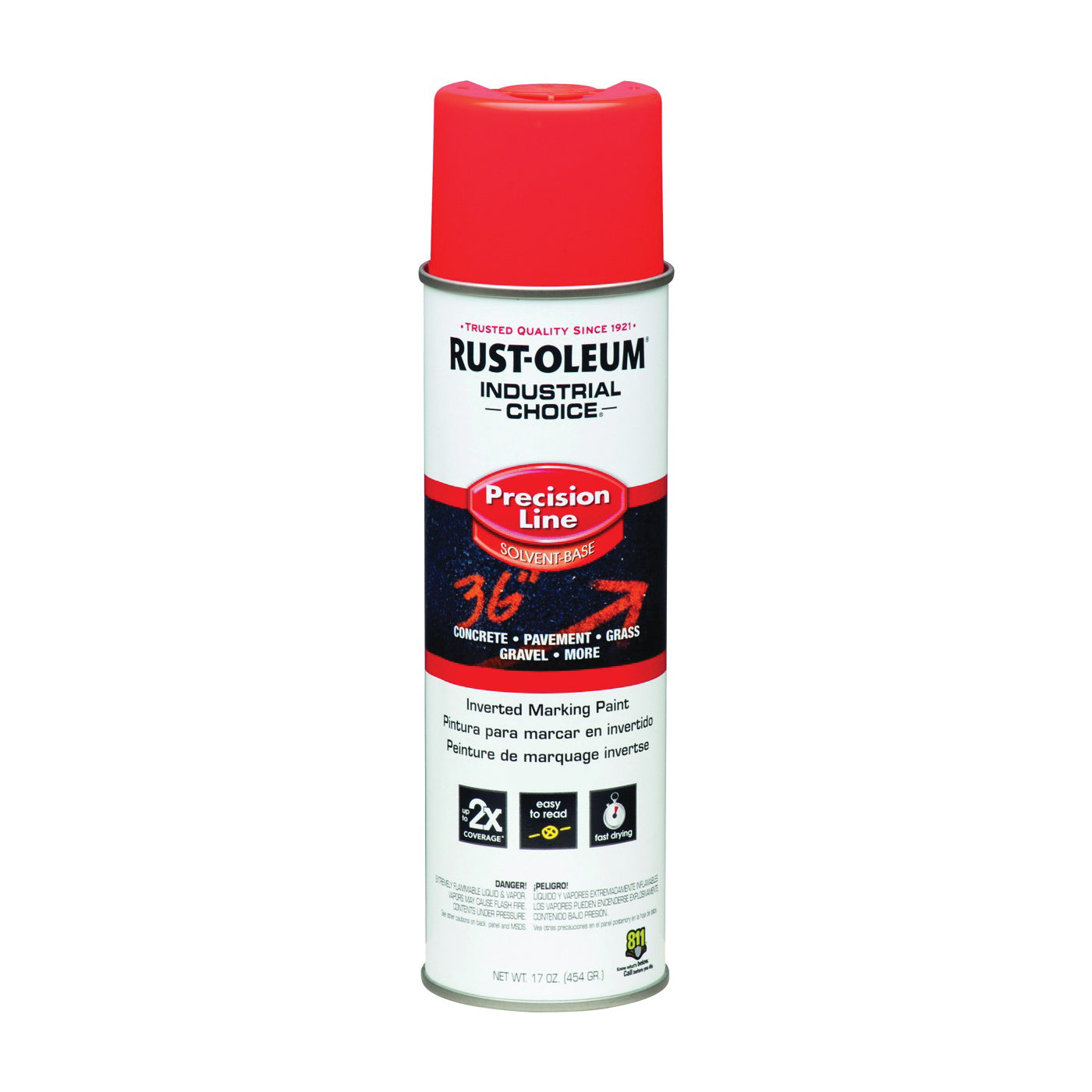 Create ultra-crisp, long-lasting marks with RUST-OLEUM® INDUSTRIAL CHOICE® M1600 system precision line inverted marking paint spray. This solvent-based formula creates accurate, easy to read markings in bright, durable colors.