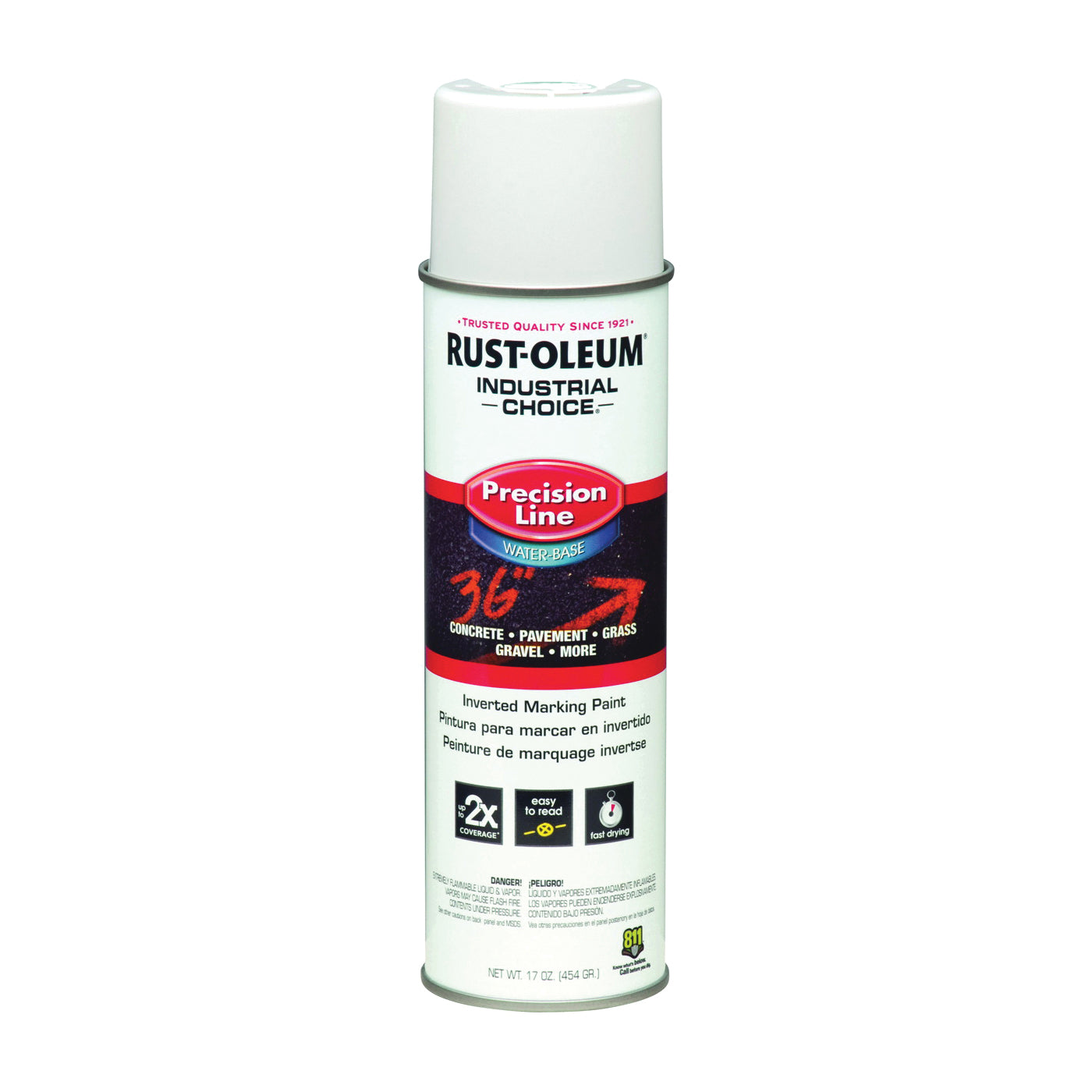 Create ultra-crisp, long-lasting marks with RUST-OLEUM® INDUSTRIAL CHOICE® M1800 system precision line inverted marking paint spray. This water-based formula creates accurate, easy to read markings in bright, durable colors.