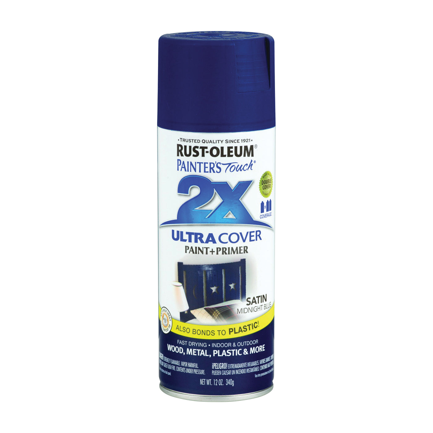 • RUST-OLEUM PAINTER'S Touch 249854 Satin Spray Paint, Satin, Midnight Blue, 12 oz, Aerosol Can