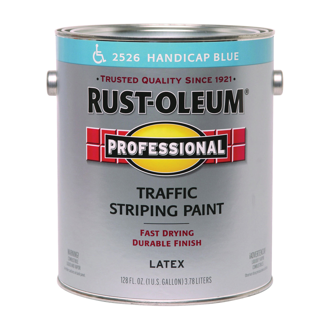 RUST-OLEUM PROFESSIONAL traffic striping paint is a single-component, water-based acrylic coating. Dries fast (in 30 mins) and can accept traffic after 8 hrs. Use for large striping jobs on interior or exterior concrete or asphalt surfaces such as large commercial parking lots, curbs or aisles.