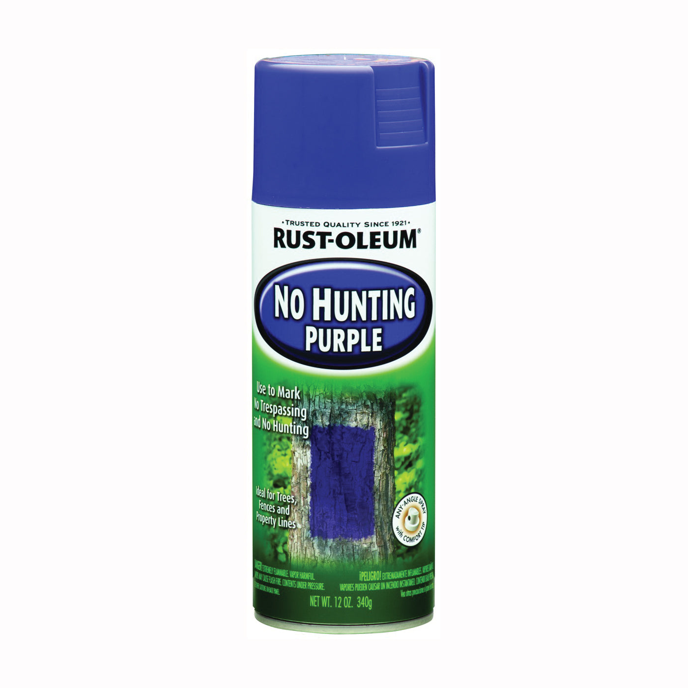 RUST-OLEUM No hunting purple is a durable weather-resistant finish formulated for marking trees, fences and property lines. This product is designed for use in states regulated by "NO HUNTING" paint statues. Paint marks must be readily visible to any person approaching the property and must be no more than 100 ft apart. Each mark must be at least 8 in wide and at least 3 ft off the ground and no higher than 5 ft off the ground.