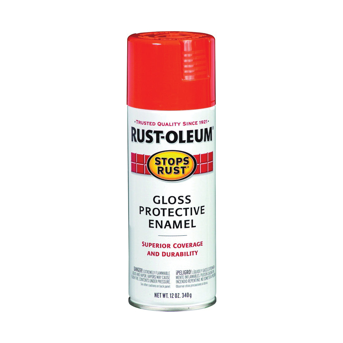 • Rust-Oleum 214084 Rust Preventative Spray Paint, 12 oz Can, 6 to 10 sq-ft Coverage Area, Oil Base, Gloss, Orange