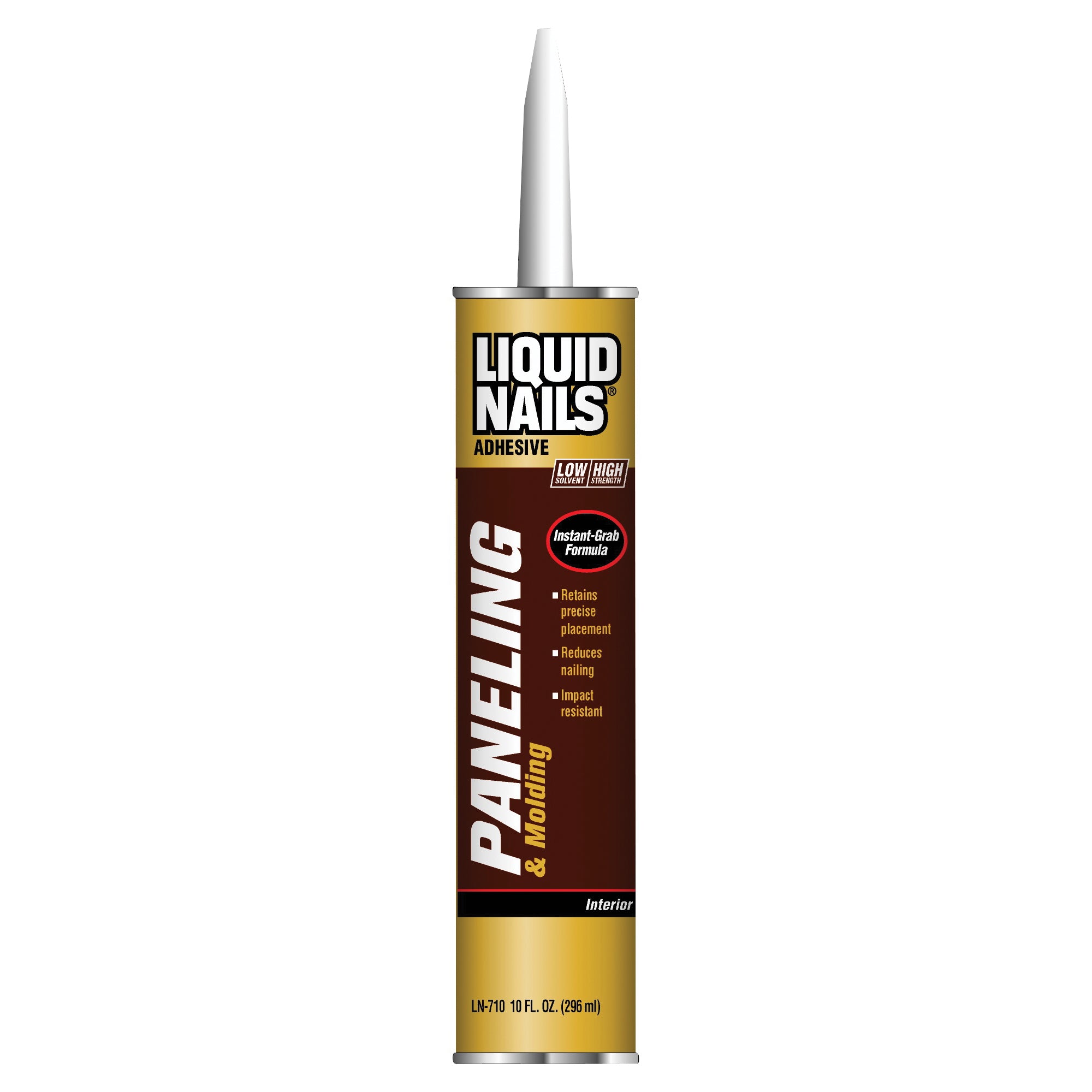 Liquid Nails Paneling and molding adhesive is a specially designed for projects like paneling and molding where instant hold is needed. The fast, sure hold provides precision placement and minimizes nailing, offering a 20 mins working time and an impact resistance bond. This product is certified by UL Environment to meet the GREENGUARD Gold Standard as a low emitting material.