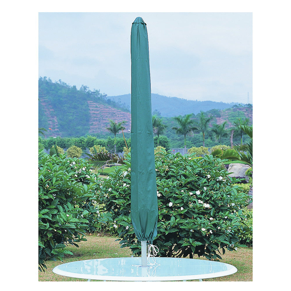 Embossed green vinyl for all-season protection from weathering and discoloring. Zip and drawstring for quick and easy placement, fastening cord holds cover in place. Fits most sizes of umbrella.