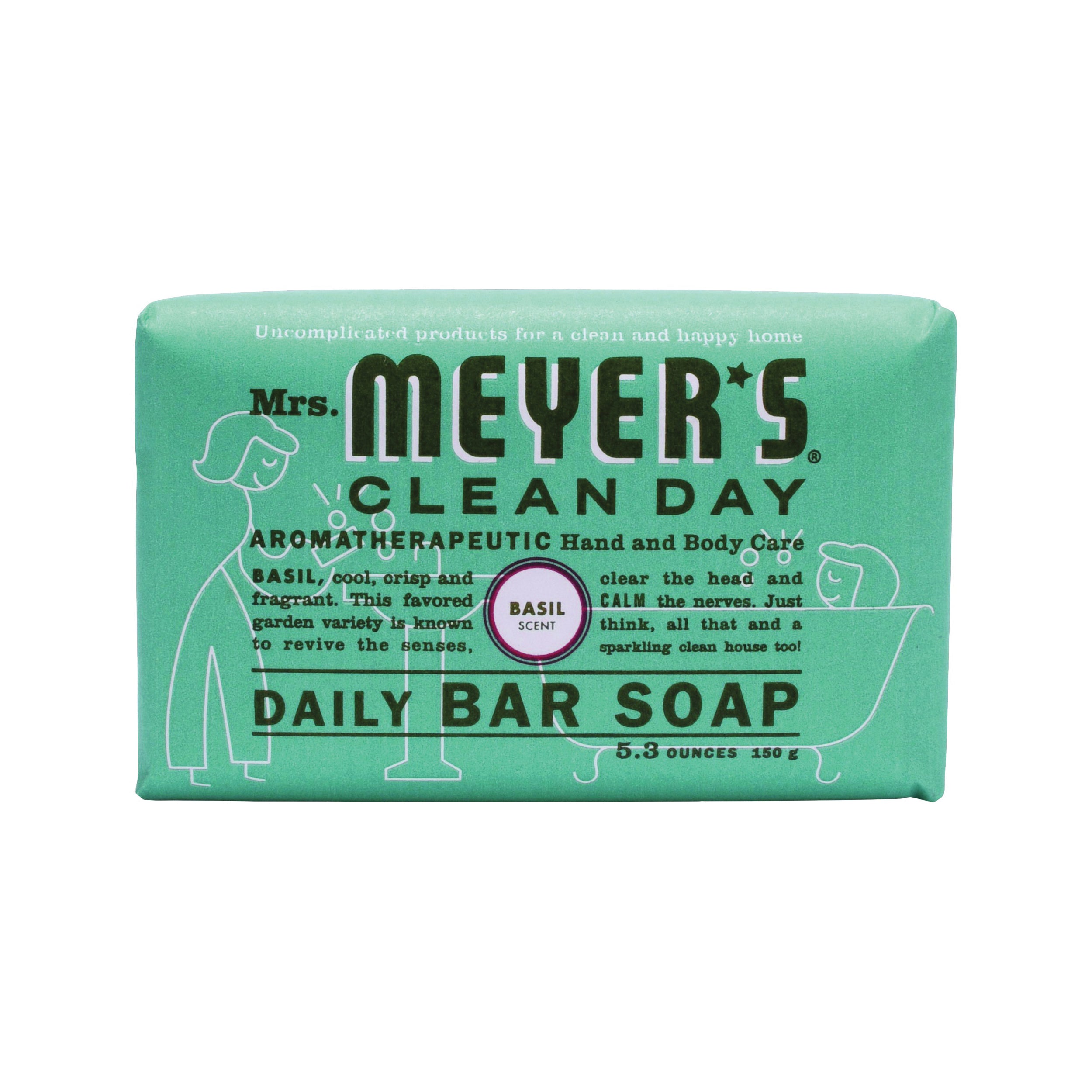 Mrs. Meyer's Clean Day Basil daily bar soap is a scented bar soap that can be used for hands, body and bath. This vegetable-based soap is milled 3X to make its lather rich and creamy.