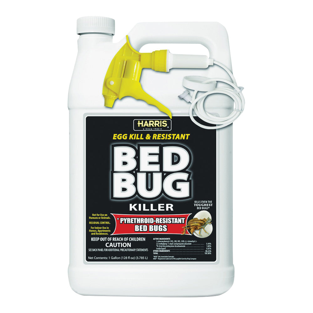Harris pyrethroid-resistant bed bug killer gallon is the most effective at killing bed bugs of all types and their eggs. There are small pockets of pyrethroid-resistant strains of bed bugs in located in some cities in the USA. For those strains, tough pyrethroid-resistant insecticides are needed to effectively eliminate the bed bug colony. We recommend using this product in combination with our bed bug aerosol and diatomaceous earth powder.