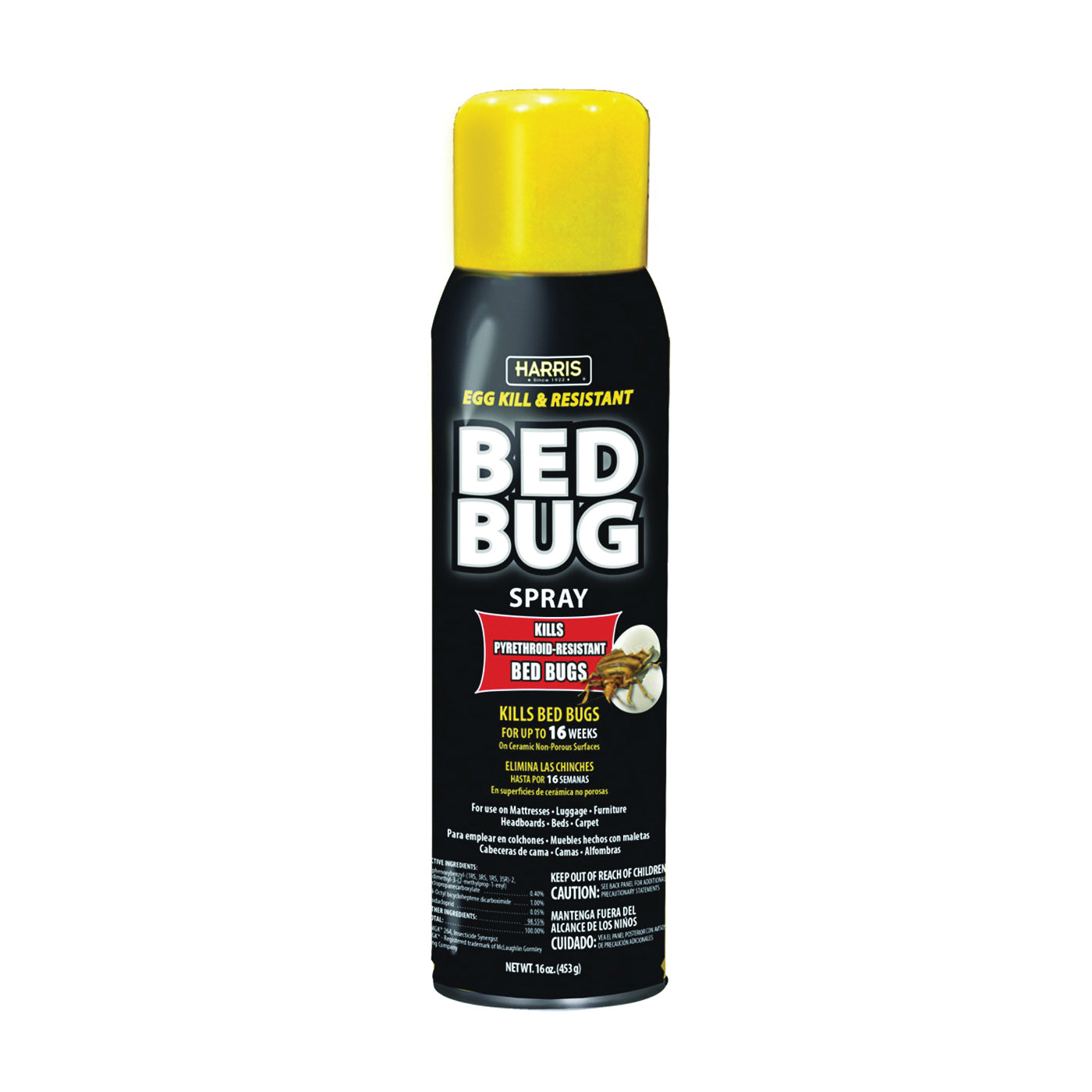 Harris pyrethroid-resistant bed bug aerosol spray is the most effective at killing bed bugs of all types and their eggs. There are small pockets of pyrethroid-resistant strains of bed bugs in located in some cities in the USA. For those strains, tough pyrethroid-resistant insecticides are needed to effectively eliminate the bed bug colony. We recommend using this product in combination with our bed bug aerosol and diatomaceous earth powder.