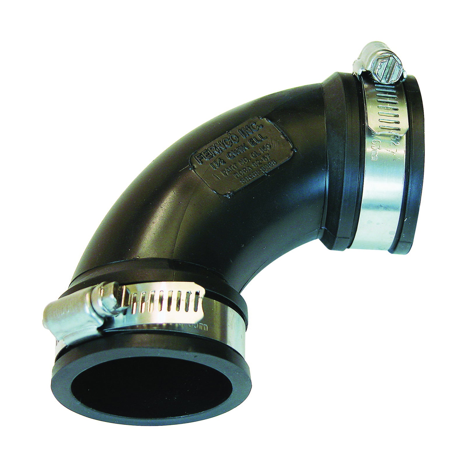 Qwik Tee's and Ell's allow up to 90 deg connections of all common household drain, waste and vent pipes quickly and easily without using special tools or fittings. Because they're exceptionally flexible and long, they're the ideal replacement for fittings at the joint during alteration or repair. Fits cast iron, copper, steel or lead pipe. Not recommended for underground connections. Do not use in pressure applications. Adapts to other pipe sizes with qwik bushings.