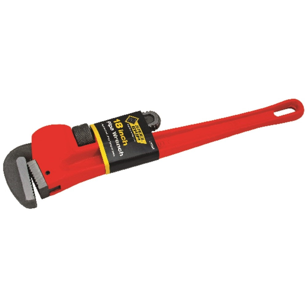 Steel Grip Pipe Wrench, Cast Iron, Enamel-Coated, Red, 18 in L