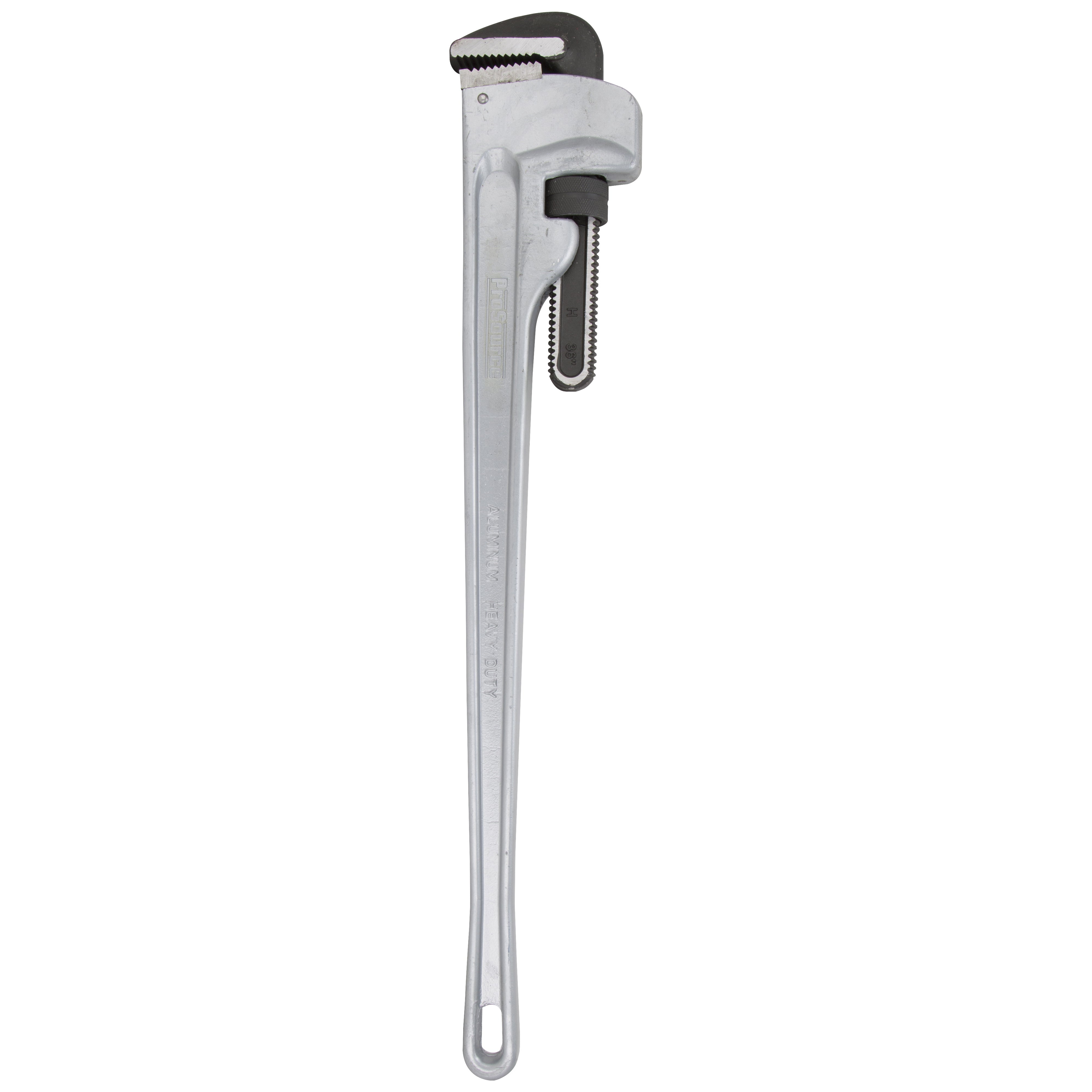 The Vulcan pipe wrench is made of high carbon steel and it has a powdered coated finish. It has a Heavy-duty die-cast aluminum alloy handle with serrated jaws. Ideal for soft iron pipes.