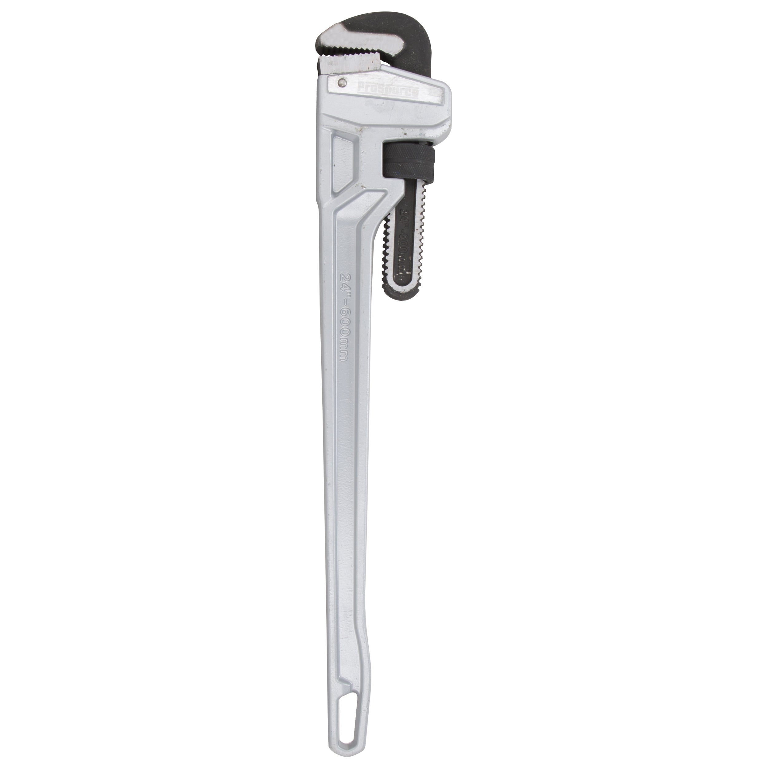 The Vulcan pipe wrench is made of high carbon steel and it has a powdered coated finish. It has a Heavy-duty die-cast aluminum alloy handle with serrated jaws. Ideal for soft iron pipes.