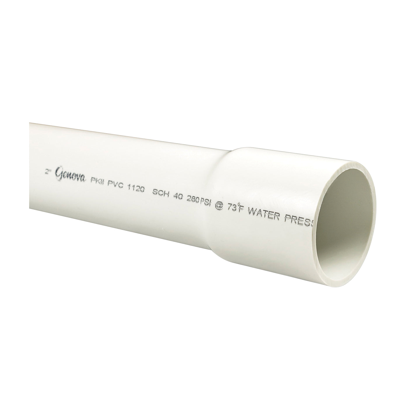 Used in cold water pressure applications only, such as irrigation and underground residential sprinkler systems, also used to make outdoor furniture. Pipe sizes are the same as iron pipe sizes. Meets ASTM-D1785. Approved for potable water piping systems. Solvent weld, use with pressure fittings. psi ratings at 73 deg F range from 280 (2 in pipe) to 600 (1/2 in pipe) depending on ID size.