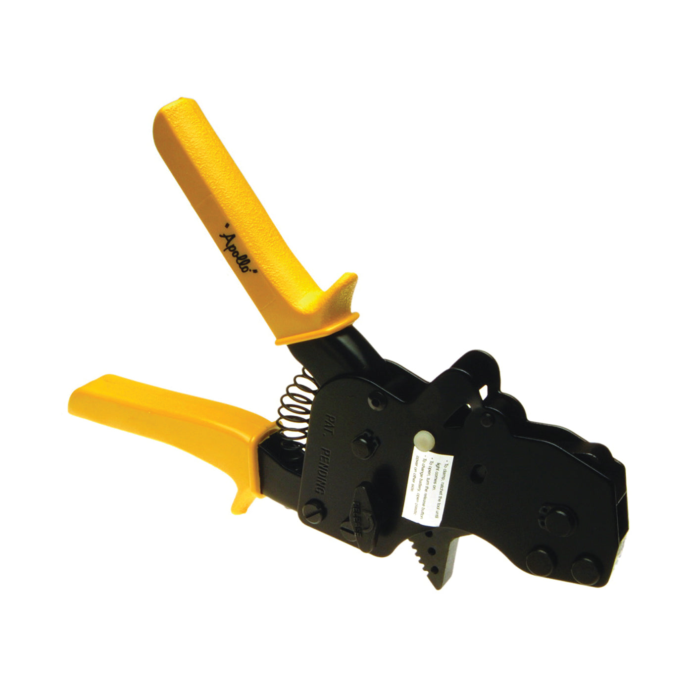 One-hand pinch clamp fastening tool. Fit pinch clamps of size 3/8 to 1 in, ratcheting action, full auto-release and LED light confirms full cinch.