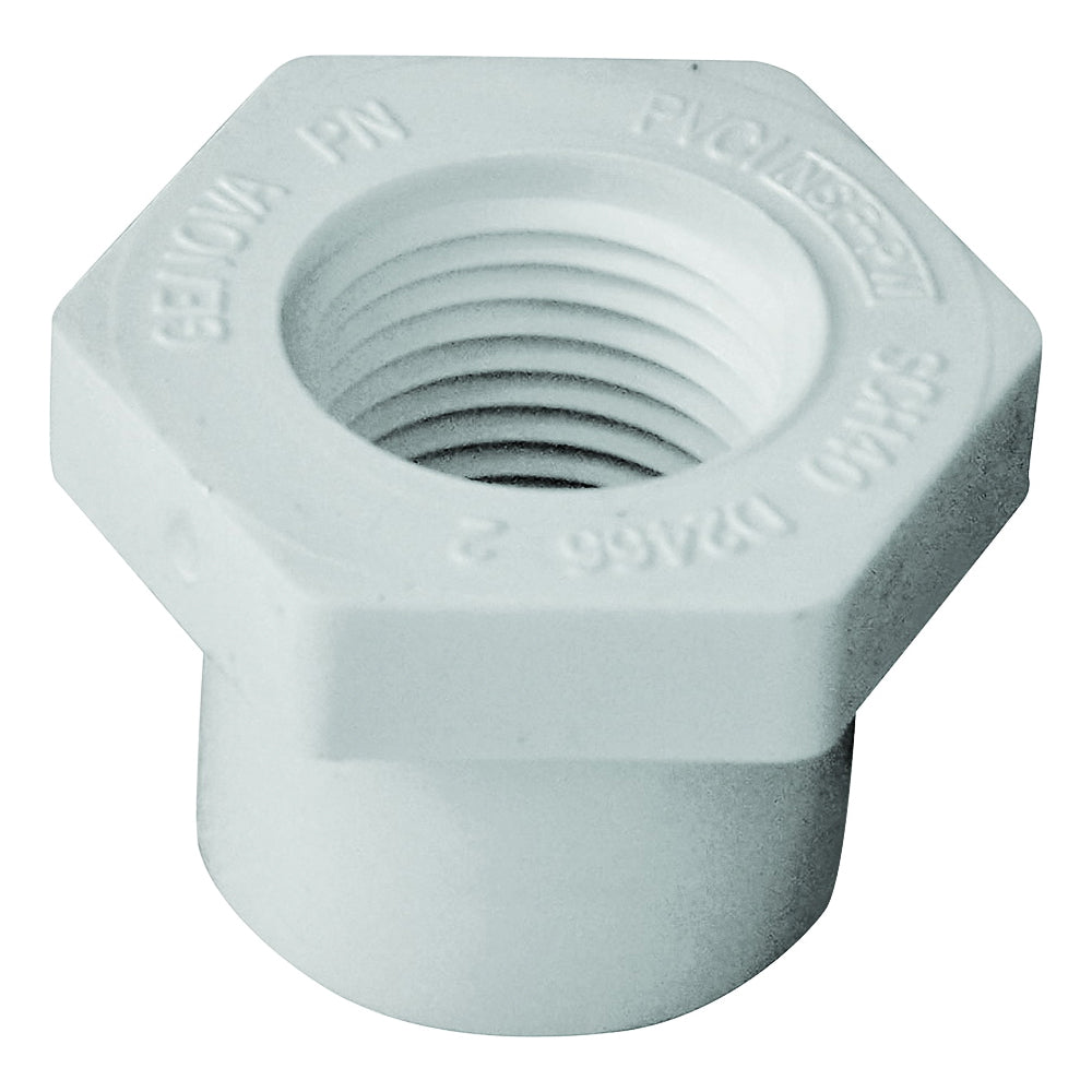 • Genova 300 Series 34275 Reducing Bushing, 3/4 x 1/2 in, Spigot x FIP, White, SCH 40 Schedule
