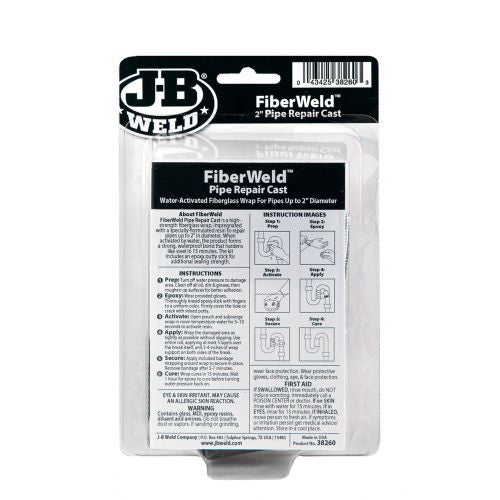 FiberWeld™ 2 in pipe repair cast is a high-strength fiberglass wrap, impregnated with a specially formulated resin to repair pipes up to 1 in Dia. When activated by water, the product forms a strong, water-proof bond that hardens like steel in 15 min. The kit includes an epoxy putty stuck for additional sealing strength.