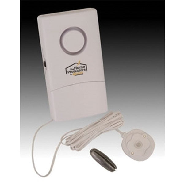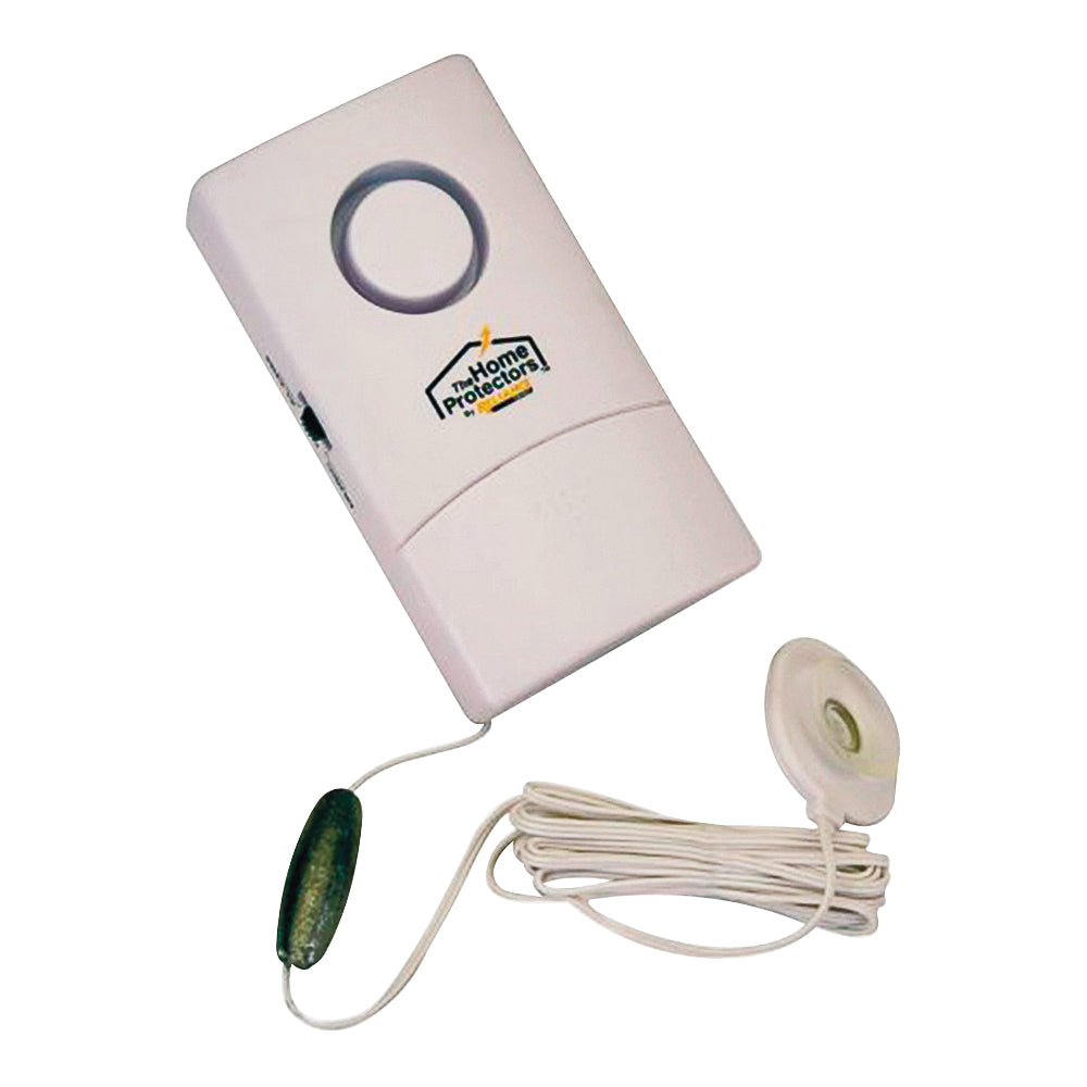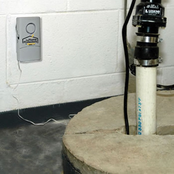 Sounds loud 105 dB or musical tone alarm. 6 ft sensor wire. Water sensing probe may be suspended at any level in sump crock by attaching supplied weight. Wall-mount anchors keep alarm dry. Low battery signal. Uses standard 9 V battery, not included.