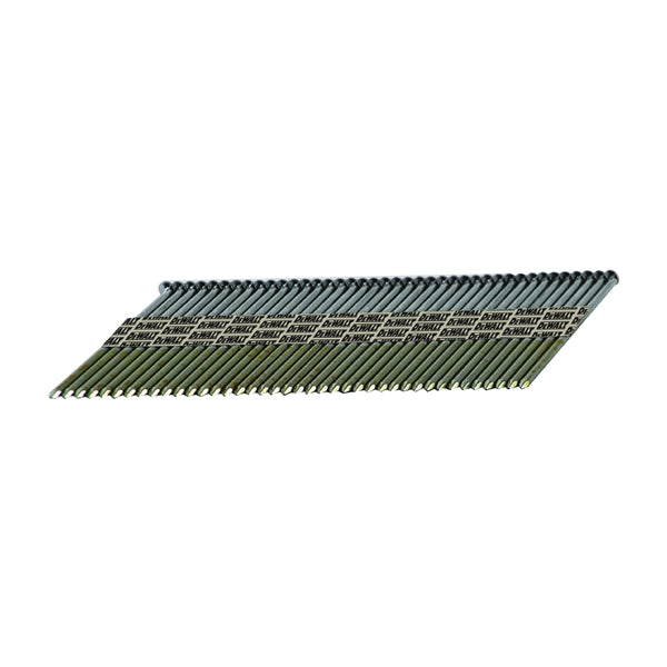 DeWALT Framing Nail, Collation Type: Paper Tape, Collation Angle: 30 deg, Head Type: Round, Point Type: Diamond, Shank Type: Ring, Material Gauge: 30, 0.12 in Dia, 3 in L, Galvanized Steel, Suitable for: Model DCN692B DeWalt Cordless Framing Nailer