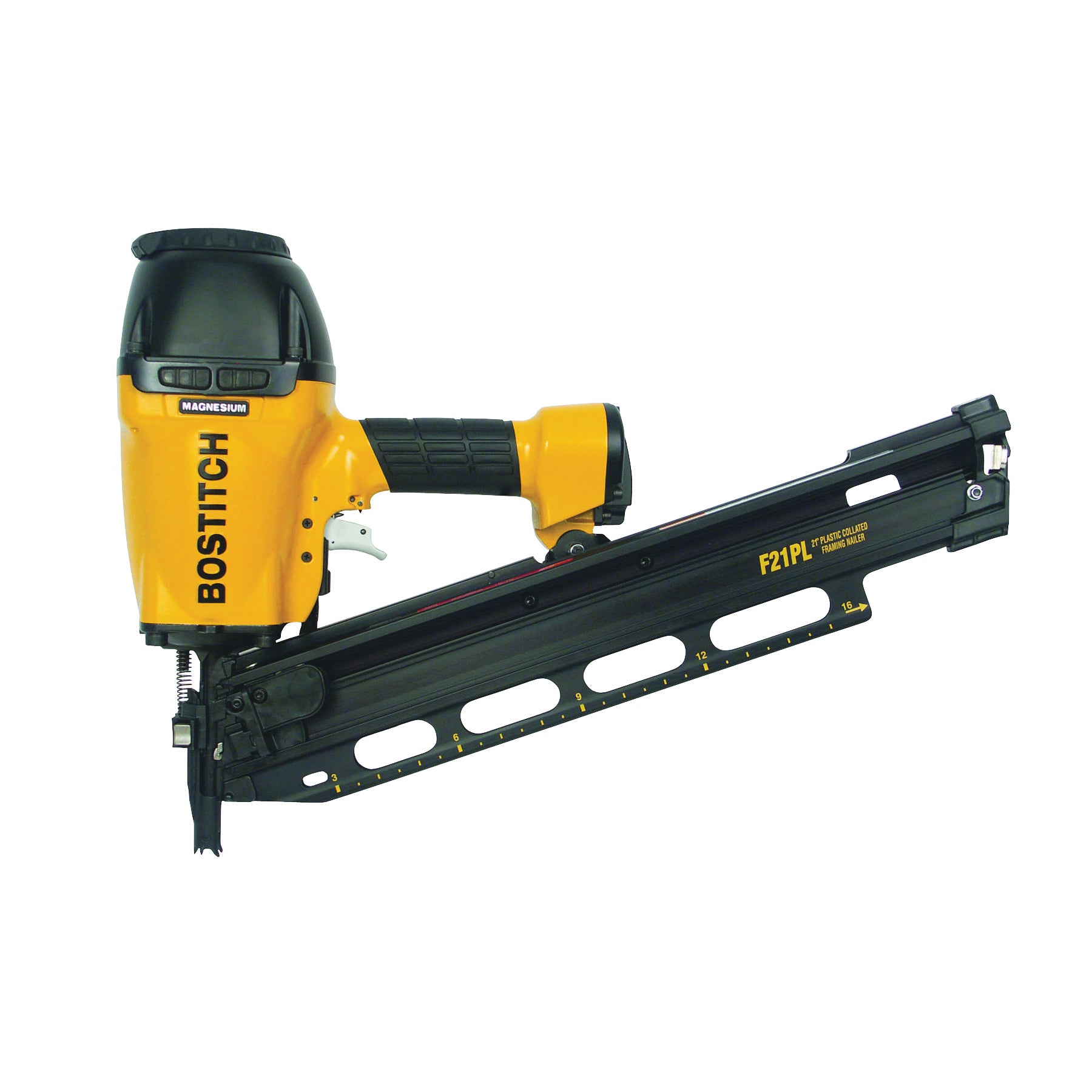This 21 deg plastic collated framing nailer is designed to drive nails into engineered lumber. It is lightweight for easy management and you can control the depth of the nail with a pushbutton. Depend on this 21 deg plastic collated framing nailer for efficiency.