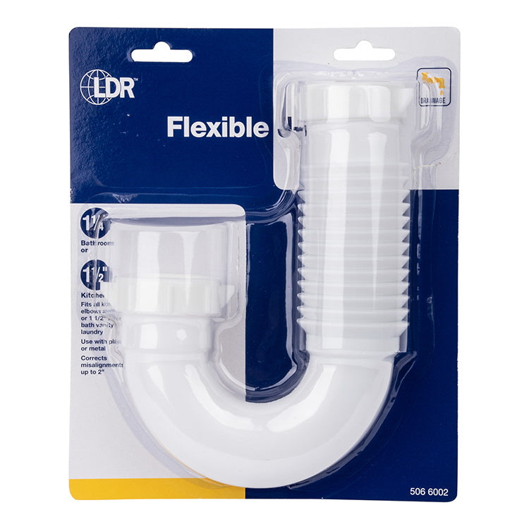 LDR Flexible J-Bend, Nominal Size: 1-1/4, 1-1/2 in, Polypropylene, White, Includes: (5) Flexible J-Bends